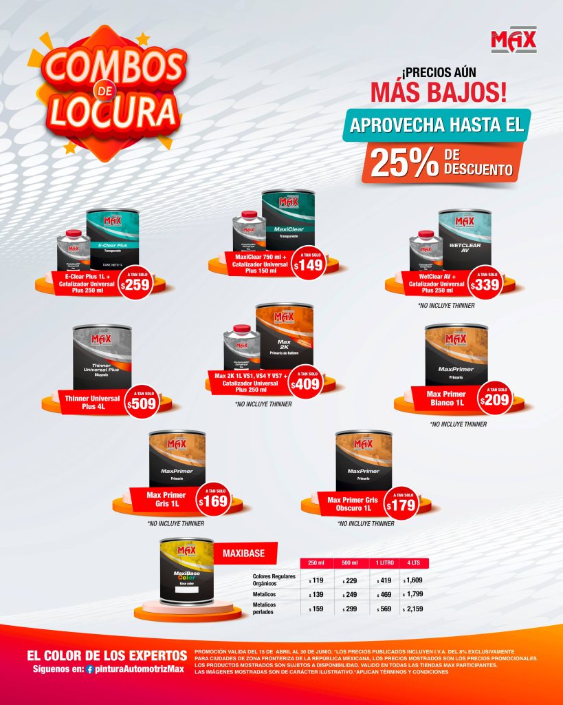 Todos los precios mostrados son precios promocionales. Precios sugeridos de venta al público general. Los productos se encuentran sujetos a disponibilidad. Promoción válida en tiendas participantes de la República Mexicana. Vigencia del 1 de abril al 30 de junio de 2025 para el público general. Los precios publicados incluyen I.V.A del 8% para ciudades fronterizas y del 16% para el resto de la república. Aplican restricciones.